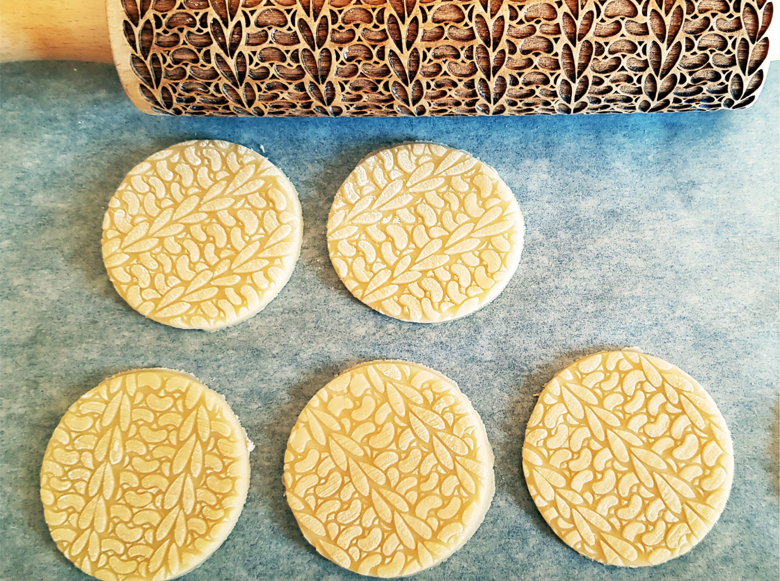 The rolling pins are designed to be the ideal size with a spacious surface for engraving your favorite designs. They measure 15 inches (38 cm) with handles, an embossing part of 7.9 inches (20 cm) and a diameter of 2.4 inches (6 cm), all made from premium-quality beech wood. Each rolling pin is laser engraved with precision, hand polished, and finished off with a protective wood conditioner for long-lasting durability. Since it’s a natural wood product, each rolling pin is unique with slight color variations and visible wood rings on the engraved surface, making it one-of-a-kind just for you!