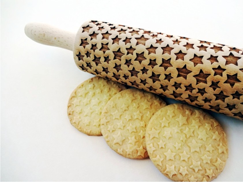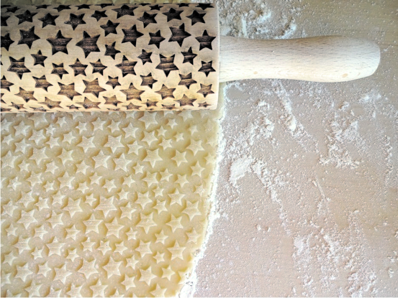 The rolling pins are designed to be the ideal size with a spacious surface for engraving your favorite designs. They measure 15 inches (38 cm) with handles, an embossing part of 7.9 inches (20 cm) and a diameter of 2.4 inches (6 cm), all made from premium-quality beech wood. Each rolling pin is laser engraved with precision, hand polished, and finished off with a protective wood conditioner for long-lasting durability. Since it’s a natural wood product, each rolling pin is unique with slight color variations and visible wood rings on the engraved surface, making it one-of-a-kind just for you!
